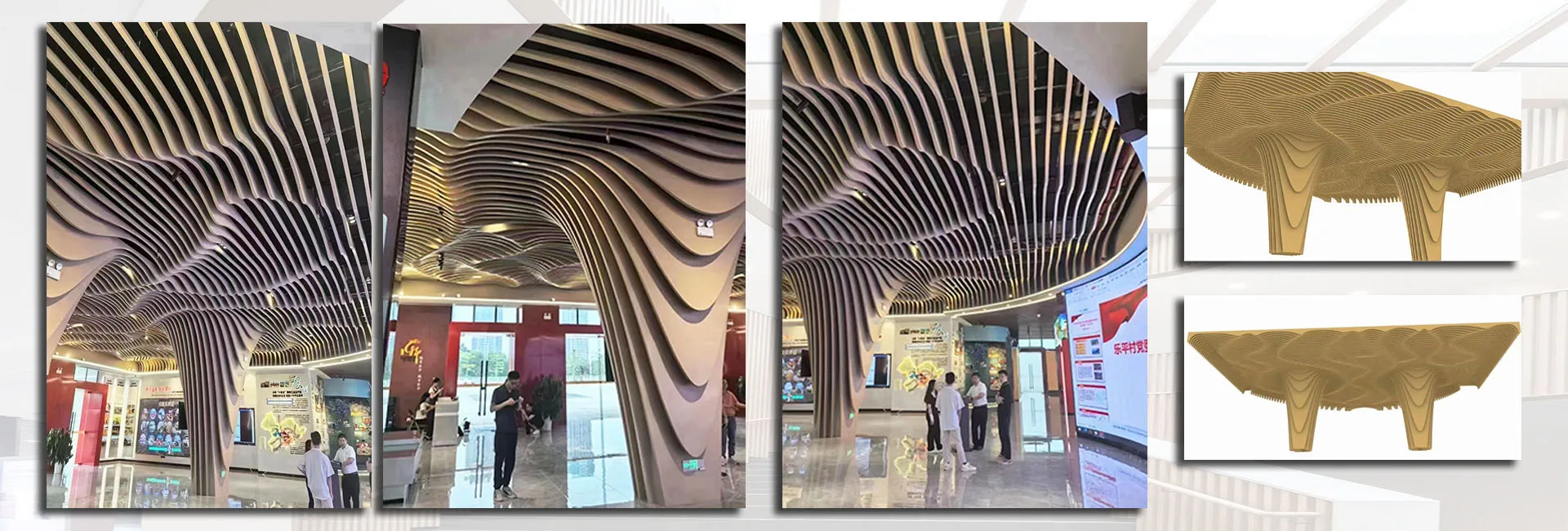 Decoración Interior Madera Grano Aluminio Deflector Techo Aluminio Curvo Suspendido Deflector Techo